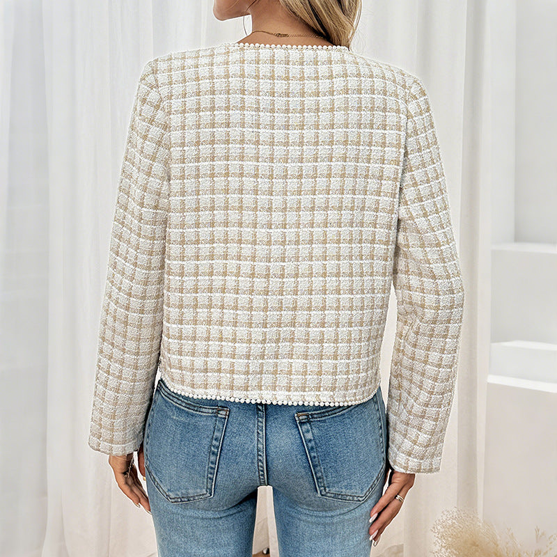 Elegant Retro Lace V-Neck Plaid Coat for Women