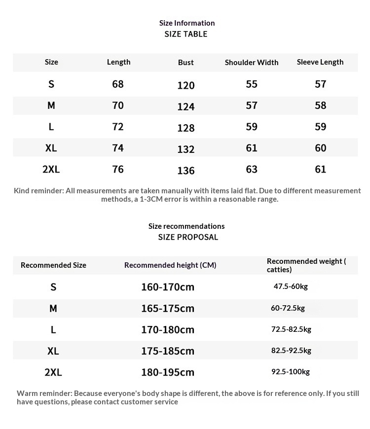 Sizes: S, M, L, XL, 2XL