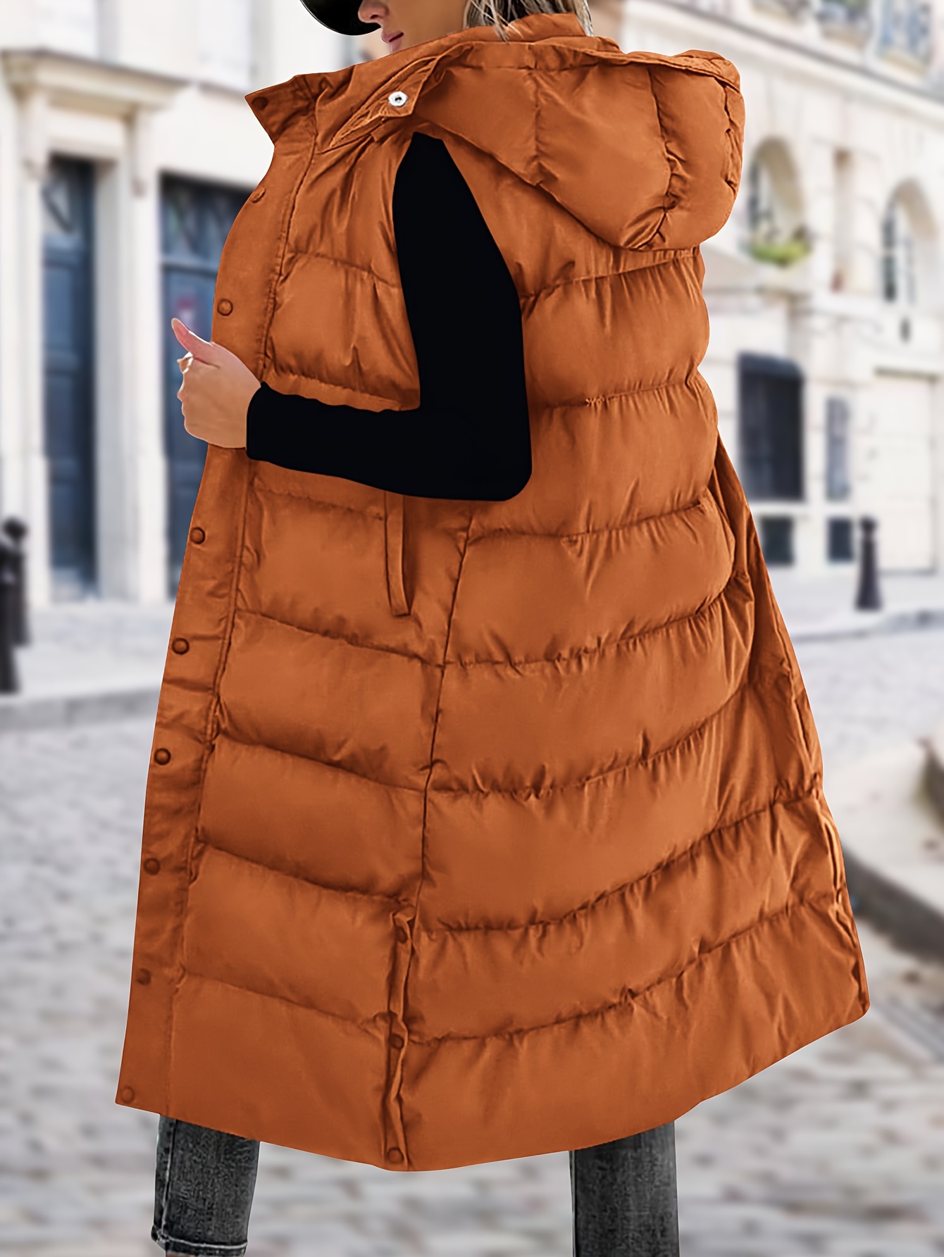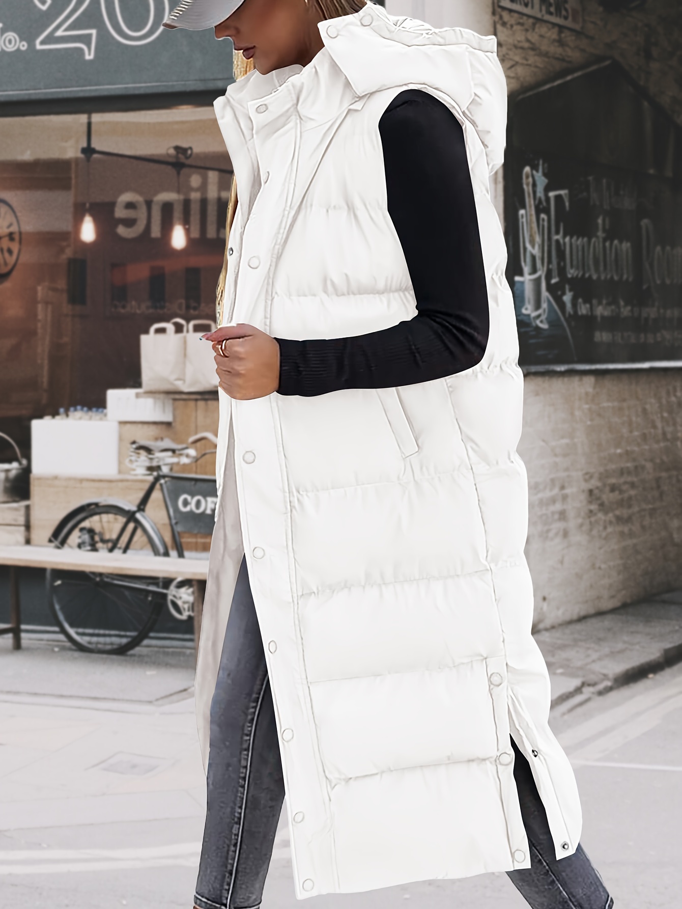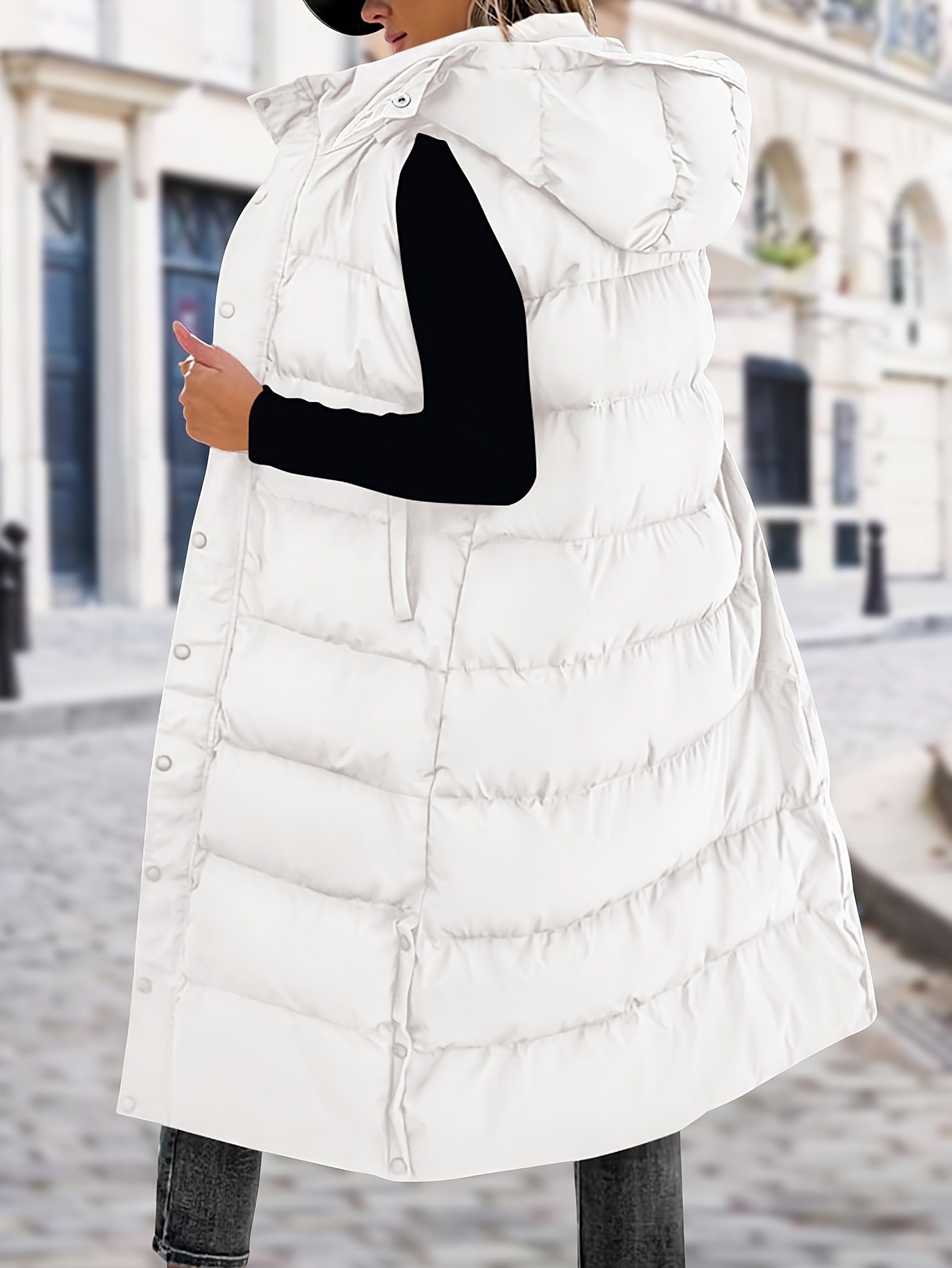 🧥❄️ Long Down Vest for Women ✨ Quilted Hooded Sleeveless Vest | 🔘 Button + Zipper | 🧸 Padded & Cozy 💼 New Fashionable Commuting Winter Jacket | 🚶♀️ Stylish Cold-Weather Outerwear