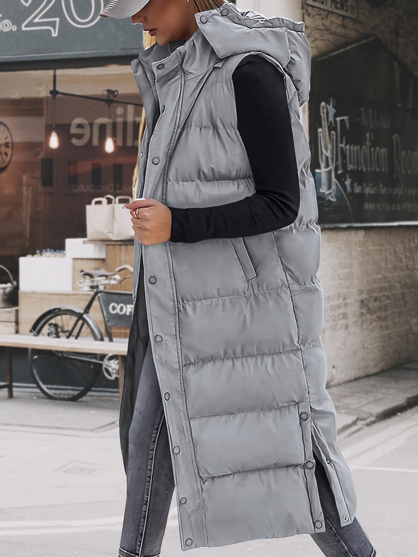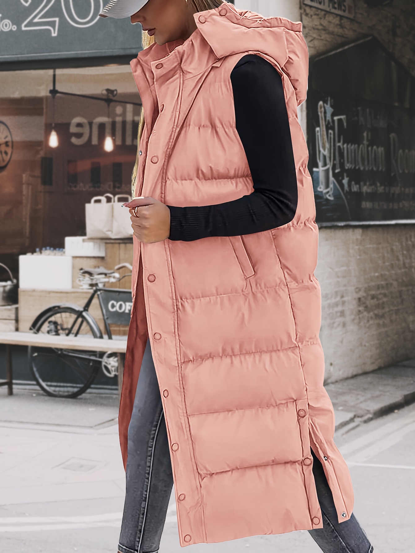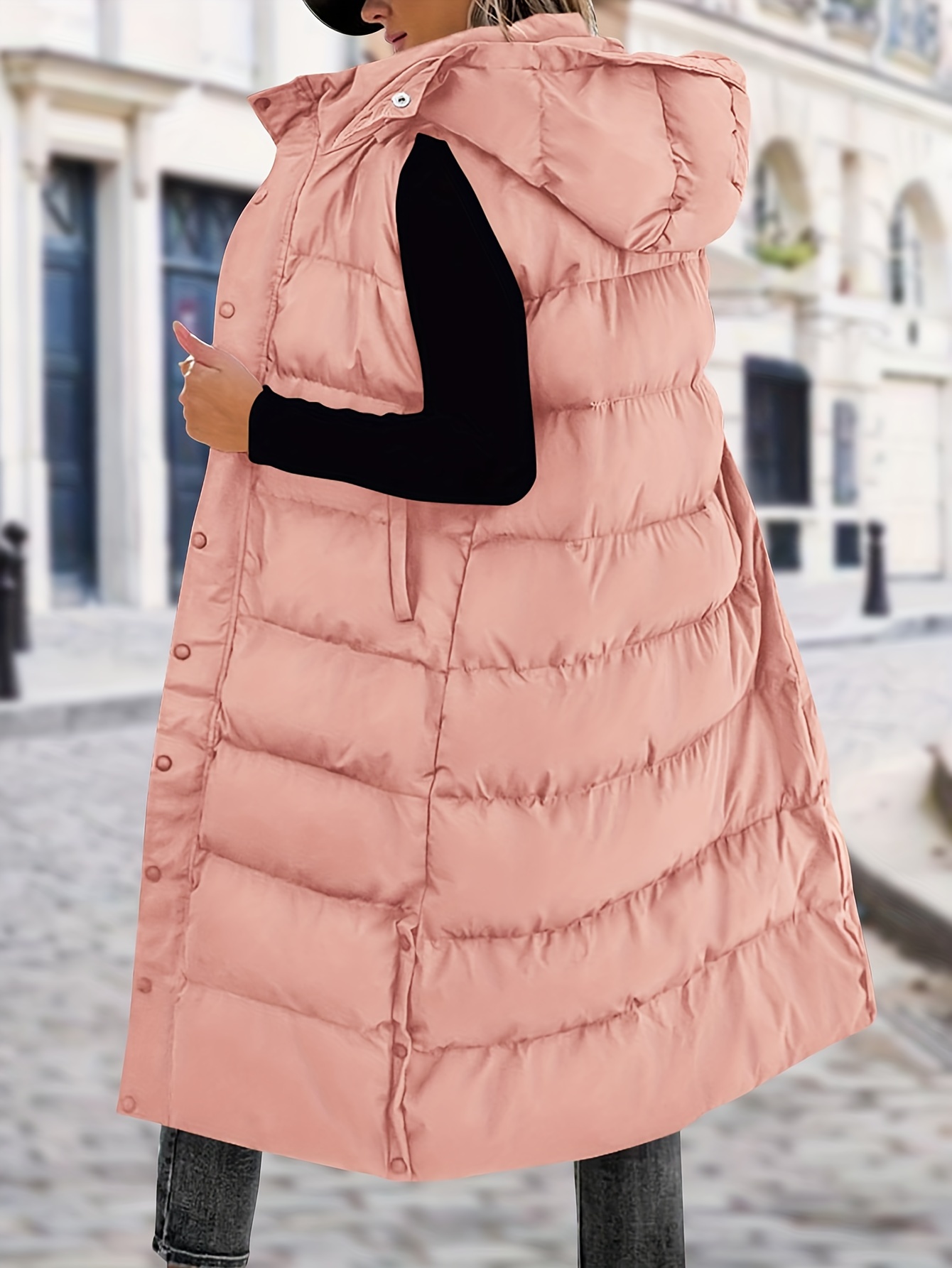 🧥❄️ Long Down Vest for Women ✨ Quilted Hooded Sleeveless Vest | 🔘 Button + Zipper | 🧸 Padded & Cozy 💼 New Fashionable Commuting Winter Jacket | 🚶♀️ Stylish Cold-Weather Outerwear