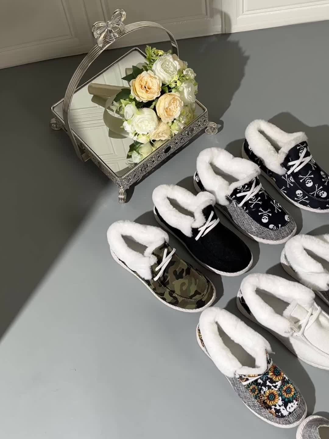Women’s Fleece-Lined Canvas Shoes – Warm Thermal Slip-On Low-Top Winter Flats